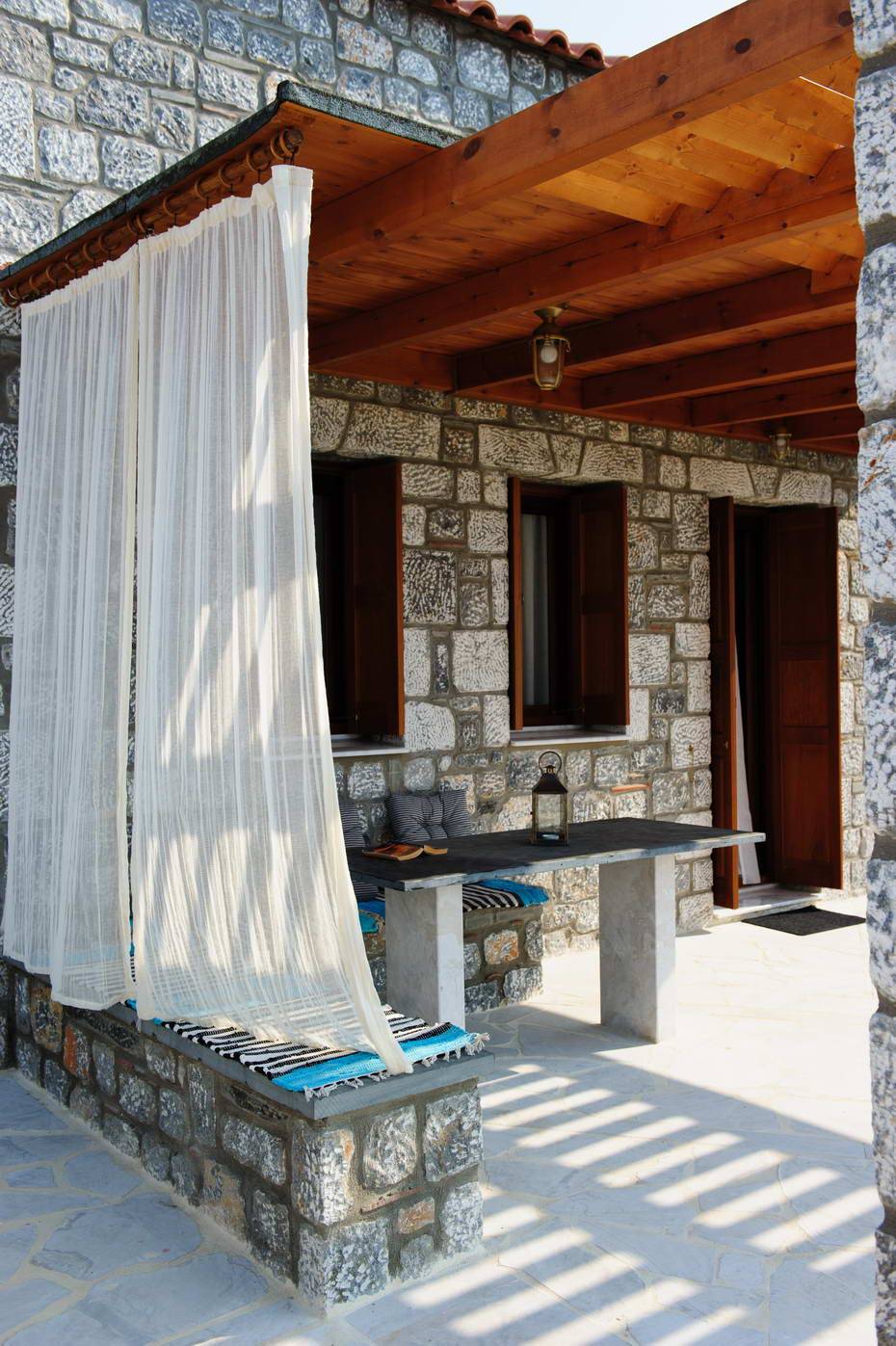 The unique design of Alisahni Villas in Kiotari Beach is a mixture of traditional (stone-built on the outdoors) and Classic furnished (indoor) styles.