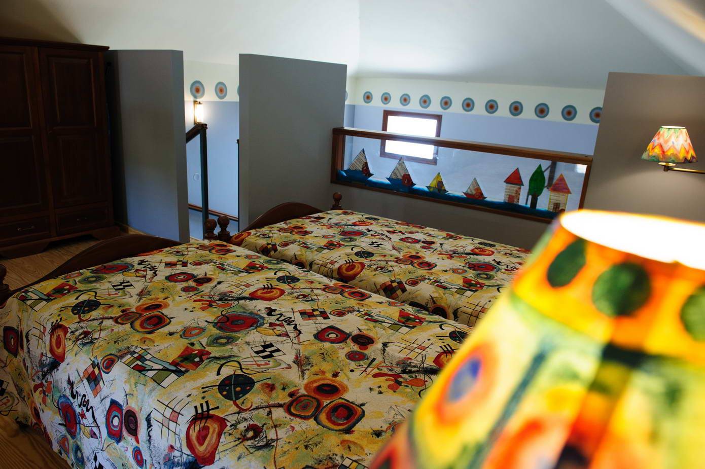 On the loft, there is a second bedroom with two single beds and with enough space to add a roll-away baby-cot (3rd child bed).