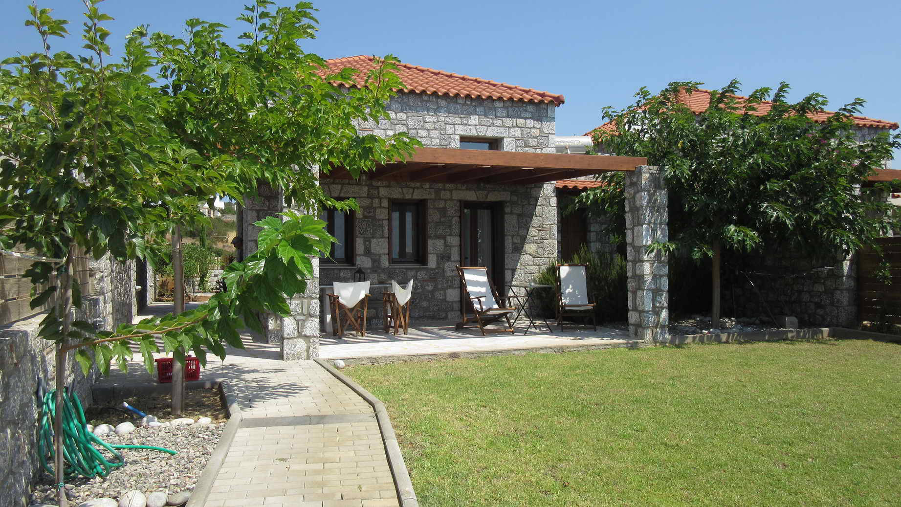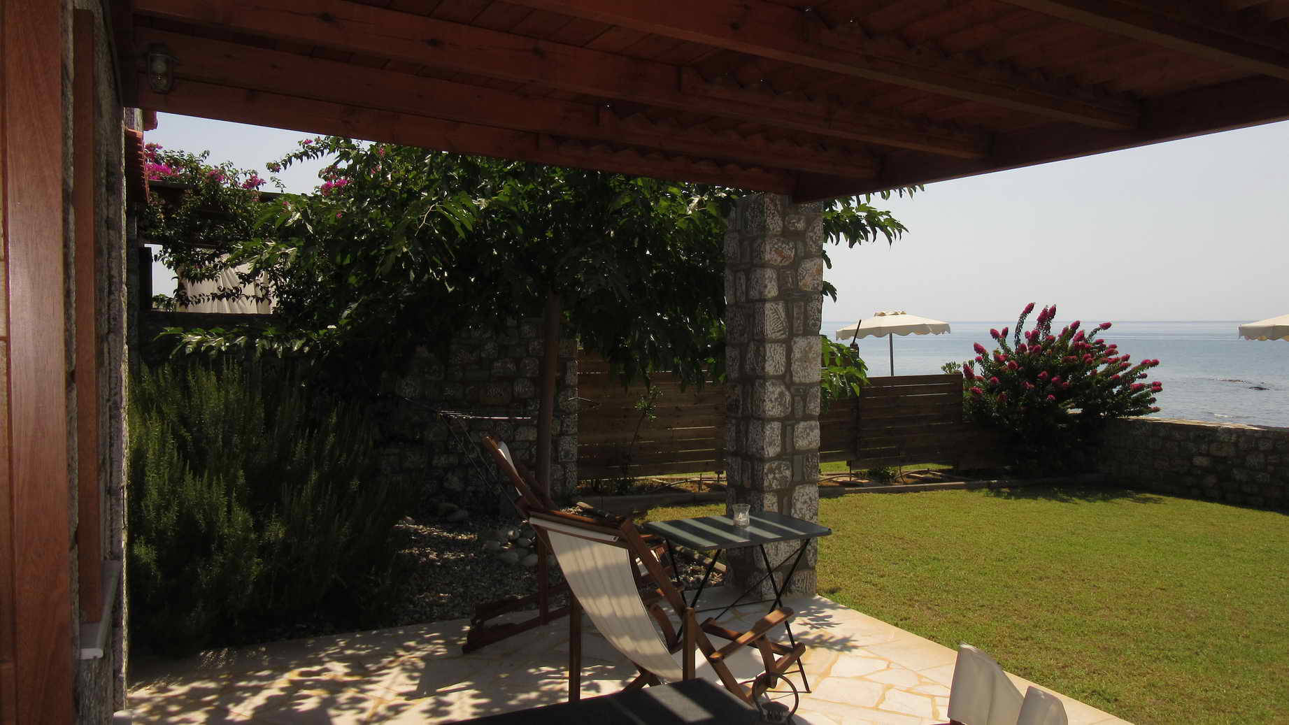 All I have to say is: Wow! This is truely a fantastic het away. Alisahni Beachfront Villas are located a close to Kiotari Beach on a quiet spot. The two villas have a spacious living room, open kitchen with everything you need for simple homecooking, two bedrooms and a bathroom. Outside there is a lovely porch with seats, benches and a table, a privat lawn and two sunbeds with an umbrella. Just outside your garden is the sea. I still wander off to the momernts I was sitting outside, seeing the sun rise and hearing no other sound that the sea on the shore.