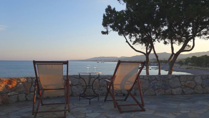 The complex, comprises 7 studio apartments and is located above a small bay, just a few paces from the seafront. All rooms have a marvelous view of the sea.