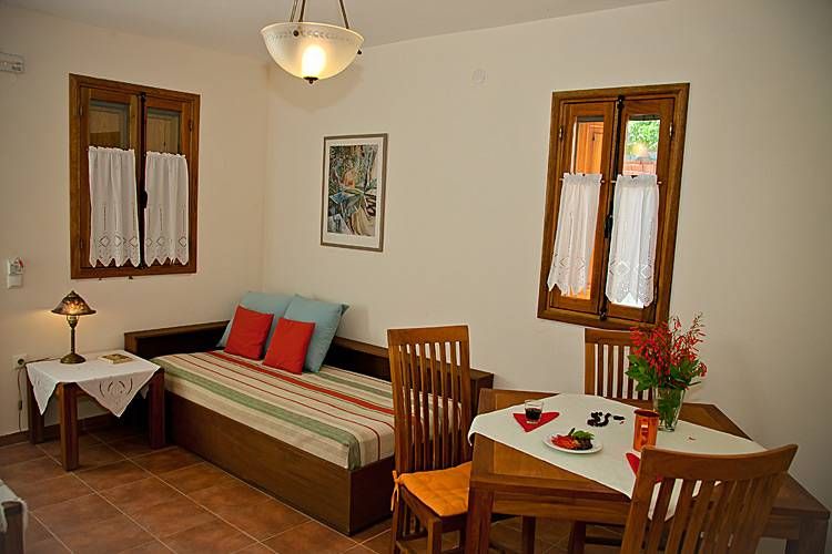 The apartment, which is suitable for 2-3 persons, consists of a comfortable double bed, a living room that may also be used as a sleeping area for one person, two windows with a view to the private porch of a stone built pergola and the Traditional Greek style exterior furniture.