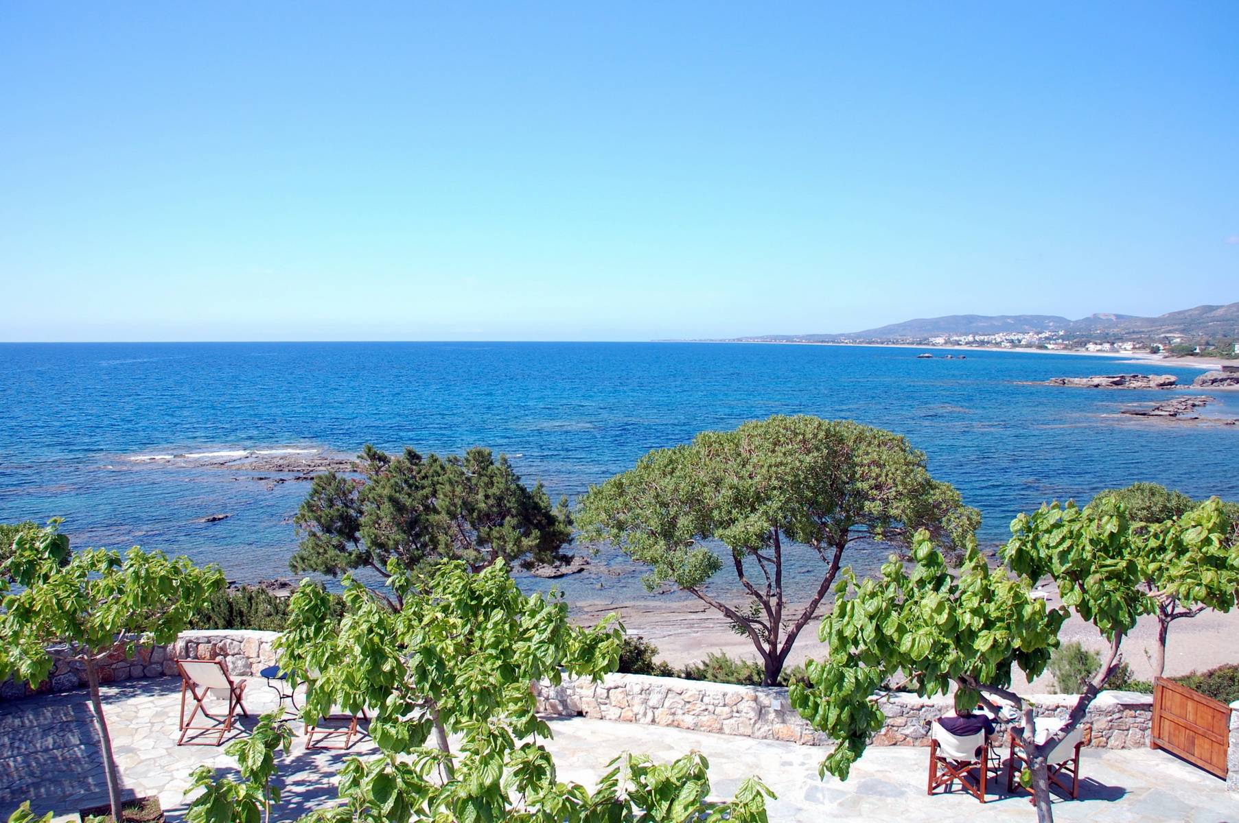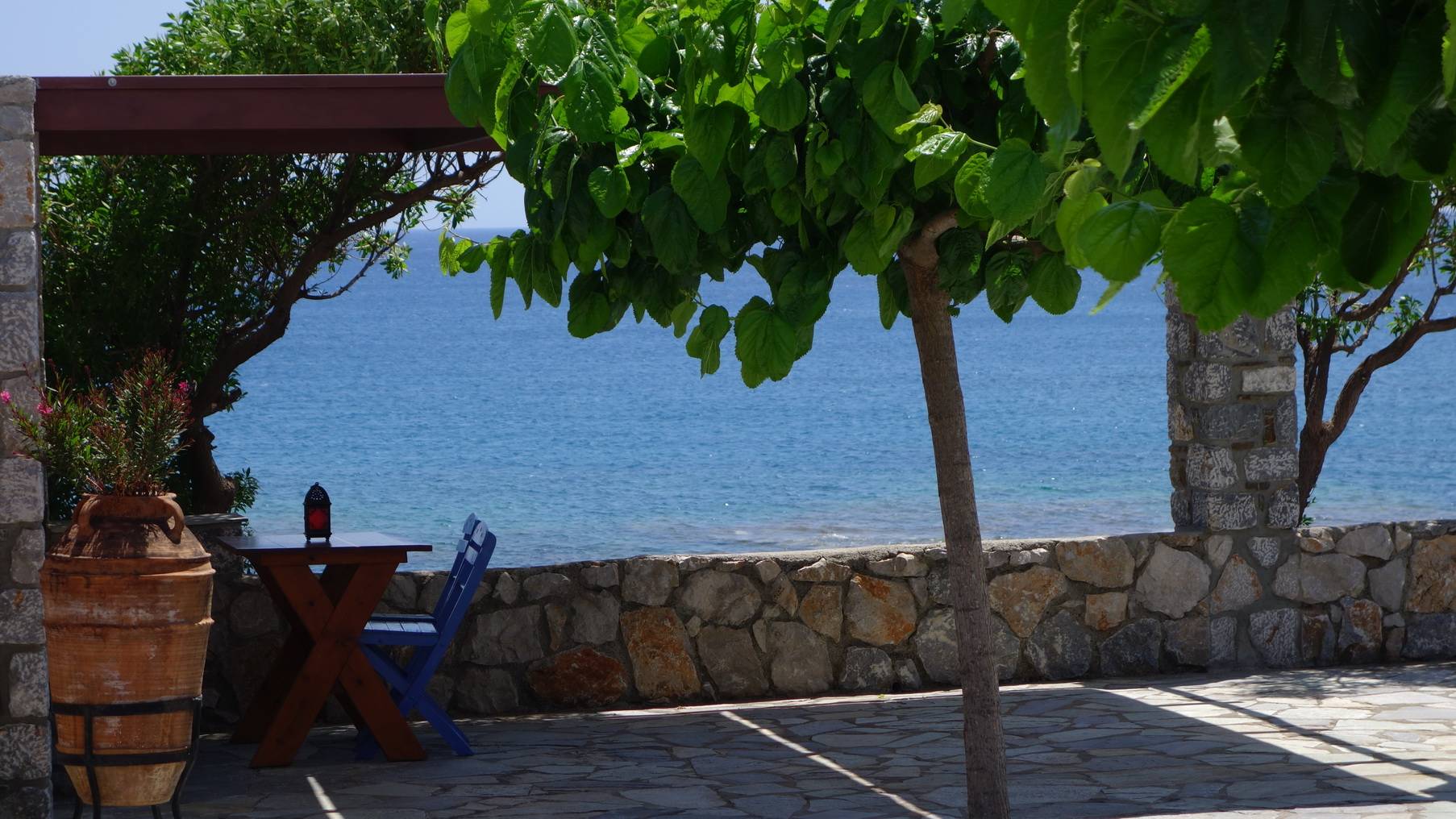 The complex, comprises 7 studio apartments and is located above a small bay, just a few paces from the seafront. All rooms have a marvelous view of the sea.